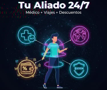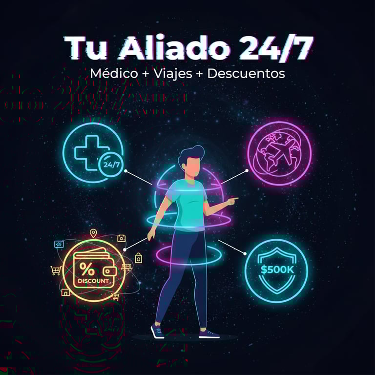 Complementa con asistencia ilimitada: médico 24/7, descuentos en 13,000 comercios, protección robos/accidentes hasta $500k y soporte viajes. ¡Más que un seguro, un aliado diario!